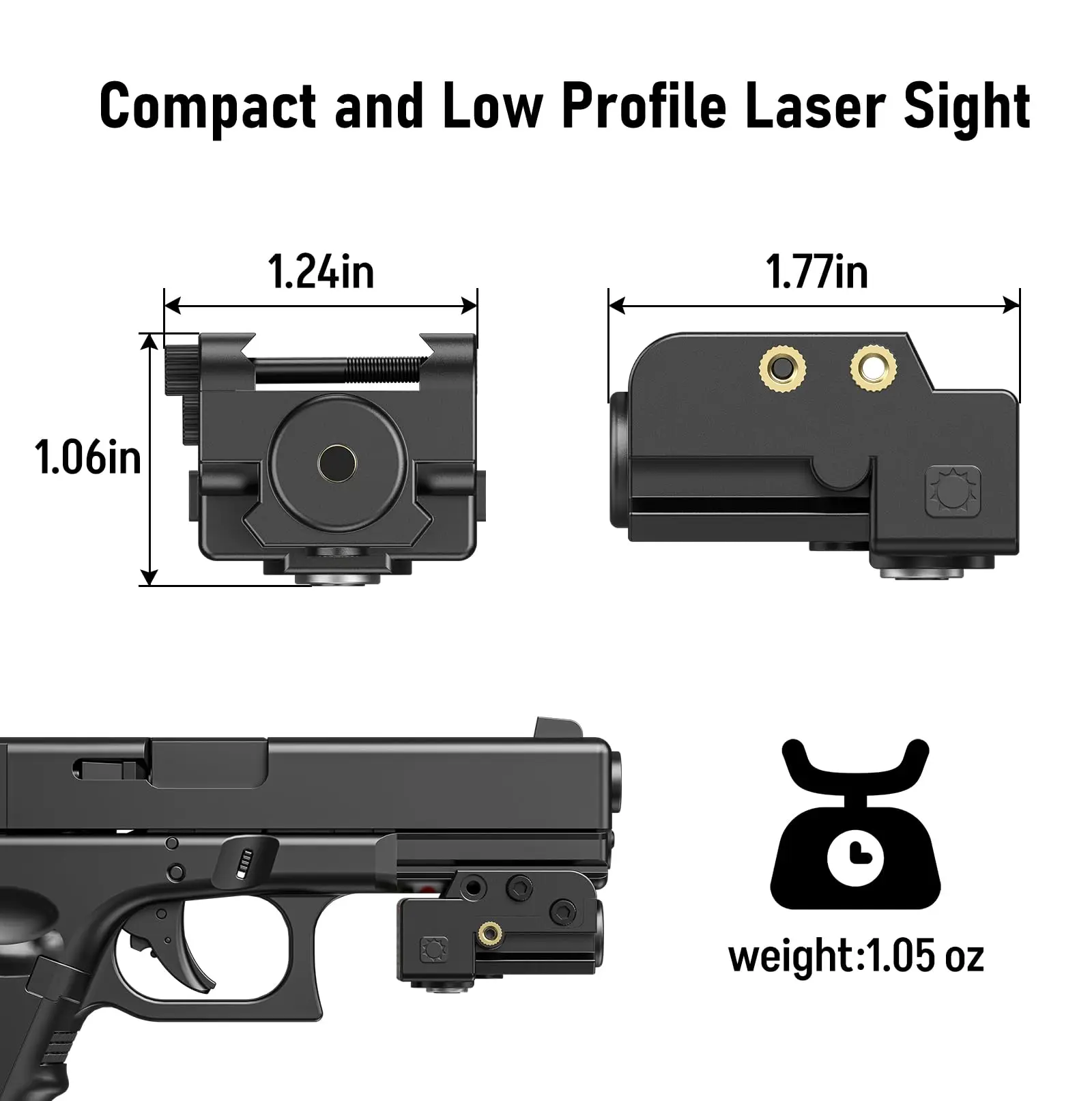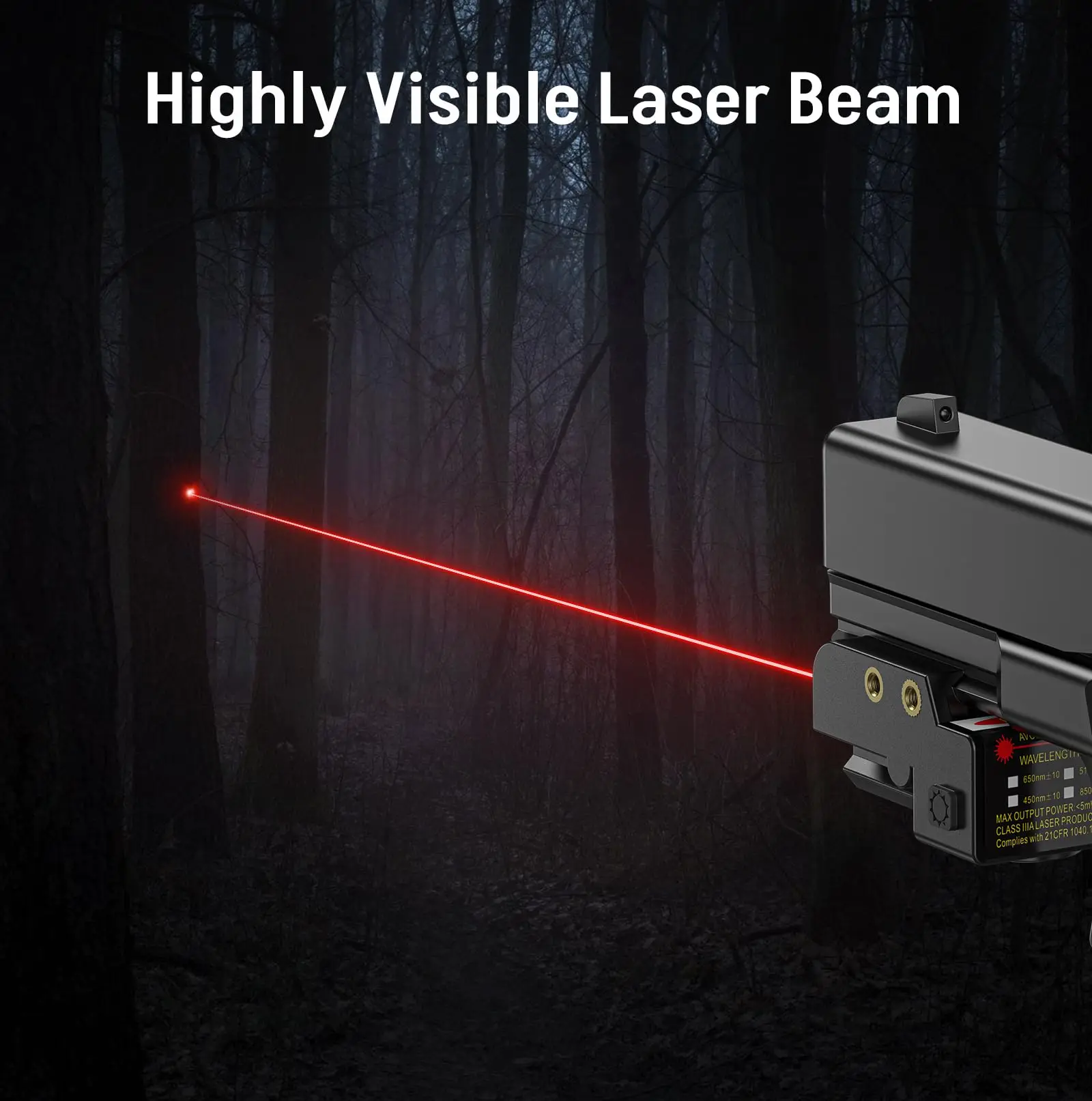 Hellrotes Laservisier: Laservisier der Klasse IIIA, maximale Leistung <5 mW.Dieser rote Laser für Pistolen verfügt über eine Wellenlänge von 650 nm, die tagsüber 50 Yards und nachts bis zu 500 Yards erreicht, sodass dieser rote Laserstrahl für die Jagd bei Tag und Nacht geeignet ist.