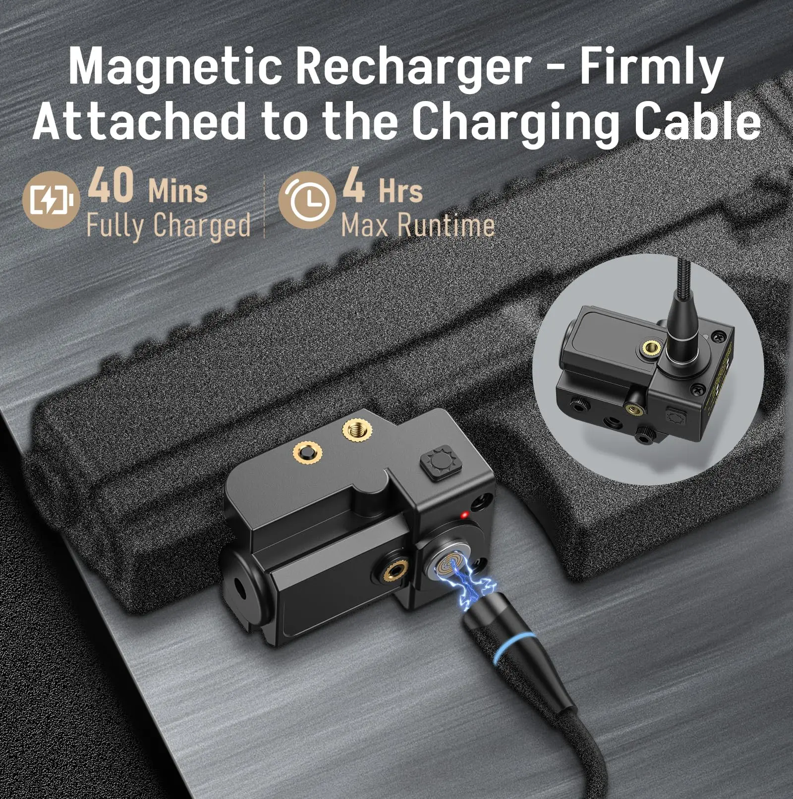 Magnetisches Laden: Kann nicht einfacher und perfekt zum Aufladen auf der Pistole sein!Für eine vollständige Aufladung sind nur 40 Minuten erforderlich. Dieses Laservisier bietet eine Laufzeit von 4 Stunden mit hellem Laser.