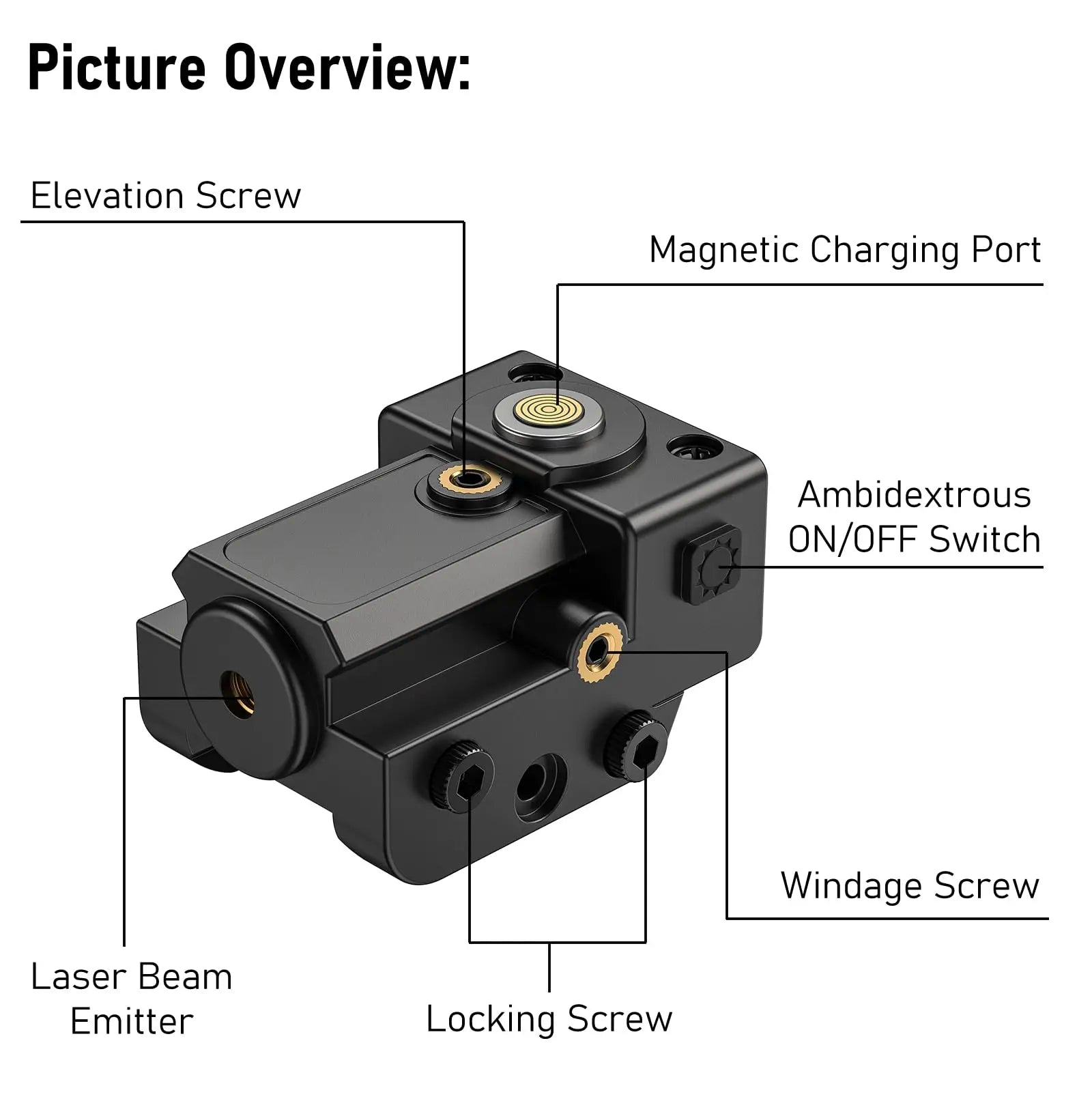 MidTen Laservisier, magnetisch, über USB wiederaufladbar, für Pistole, kompakte Low-Profile-Pistole mit beidhändig bedienbarem Ein-/Aus-Schalter