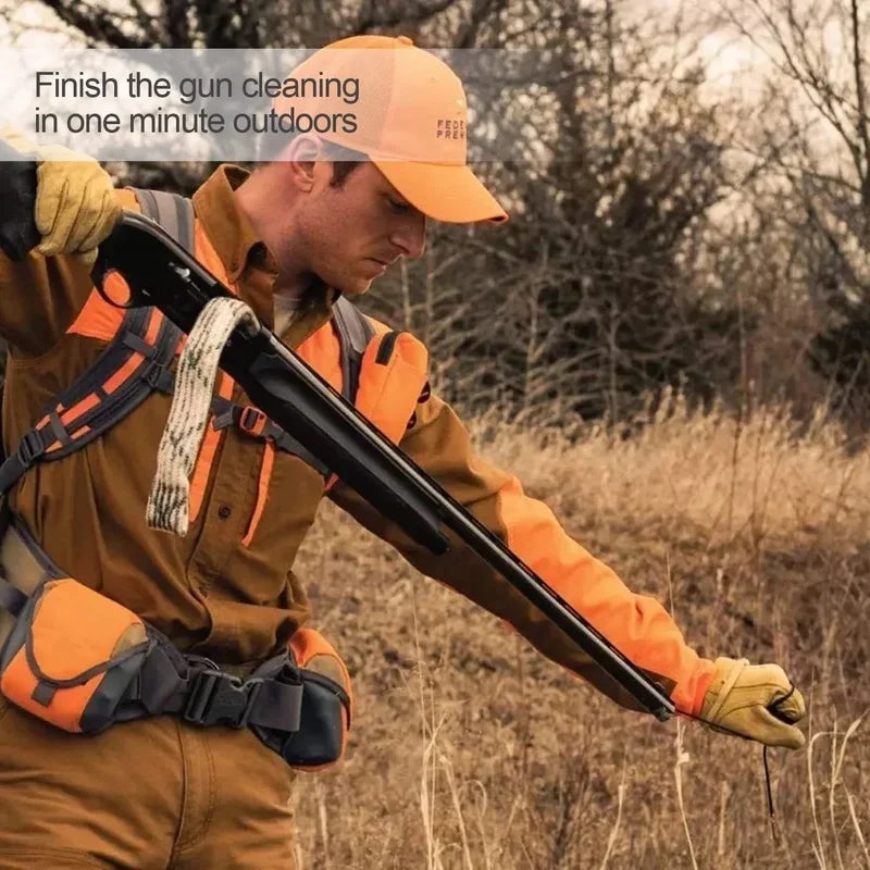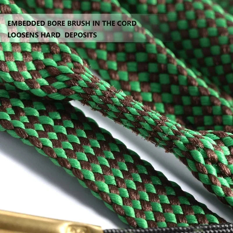GUN-REINIGUNGSSCHNEIDENSET für schnelles Bohrungsreinigungszubehör – Messingbeschwertes Durchfallschnur gleitet leicht vom Lauf herunter. Greifen Sie einfach das Kabel und ziehen Sie es durch den Lauf – ein Durchziehen macht alles.Es gibt kein freiliegendes Metall, das das Gewehr oder die Krone beschädigt, und es ist keine Montage erforderlich.Waschbar und hunderte Male wiederverwendbar.