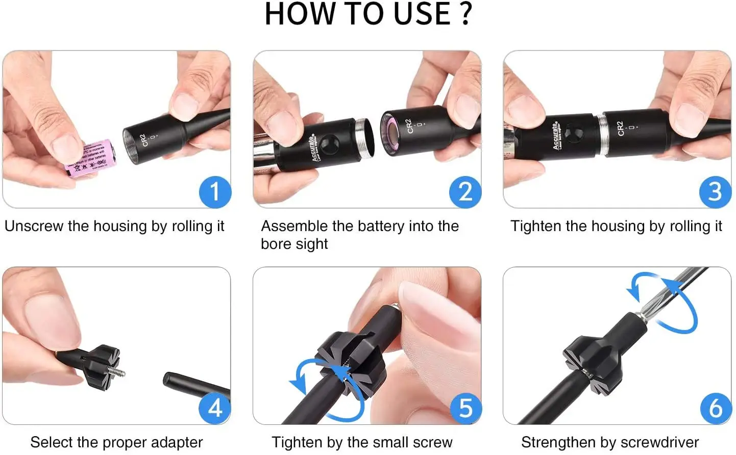 * Wenn Sie die Schraube festziehen, erweitert sich der Durchmesser des Adapters.Sobald es entsprechend Ihrem Lauf erweitert ist, schieben Sie den Adapter in Ihren Schusswaffenlauf.