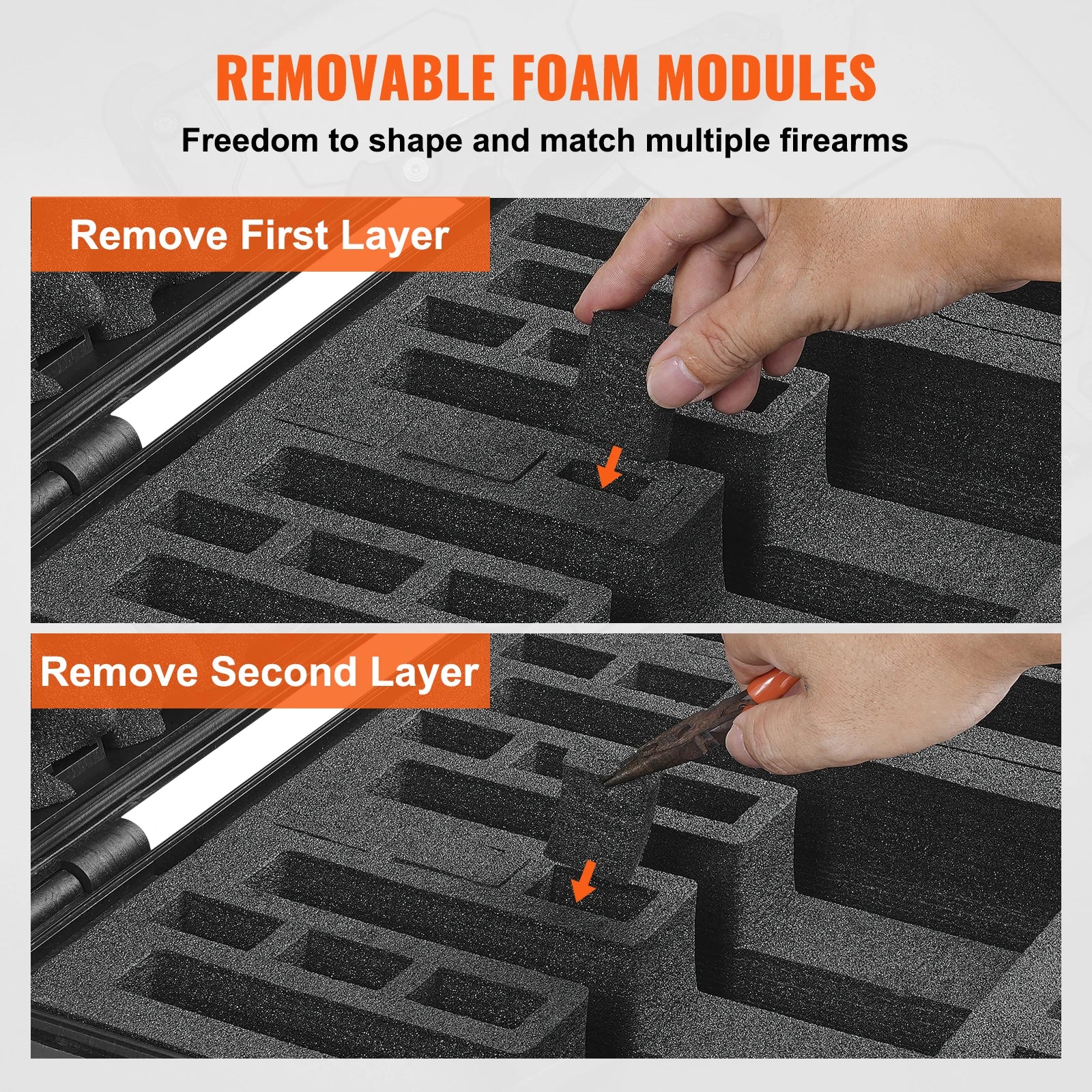 Vielseitiges XPE-Modul: Um eine präzise Passform mit Handfeuerwaffen unterschiedlicher Größe zu gewährleisten, haben wir hoch- und längenverstellbare XPE-Module integriert.Diese Funktion stellt sicher, dass selbst kleinste Handfeuerwaffen genau wie große Handfeuerwaffen passen, was sie perfekt für die Aufbewahrung der meisten Handfeuerwaffenmodelle und Zubehörteile wie Schutzbrillen, Holster, Handschuhe und Munition macht und eine ideale Aufbewahrungs- und Reiselösung bietet.